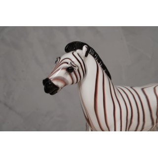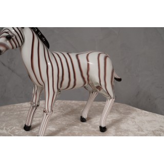 Stupenda coppia di sculture in vetro di Murano rappresentanti due bellissime zebre, inconfondibile design muranese. Incantevoli alla vista, richiedono una bella vetrina illuminata.