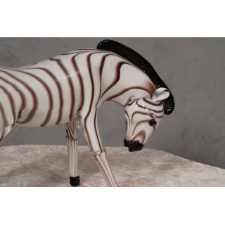 Le due zebre sono in vetro di Murano, bianche con striature nere. Gli oggetti sono di manifattura molto ricercata e finemente artigianale. Osservandole da vicino, oltre alla raffinatezza della sua fattura, si può percepire la maestria con cui il maestro ha realizzato l'opera, nonché l'espressione e la collocazione data alle due opere. Sicuramente un artista di altissimo livello. Le fornaci di Murano creano un indiscutibile design senza tempo. Raffinatezza e classe come è lo stile di Murano, pezzi unici che rimangono sempre preziosi. Misure ( 30 x 12, H 20 ) Inches ( 12 x 5, H 8 ).