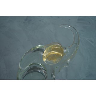 The Murano glass sculpture has the same workmanship as a "sommerso". The "submerged" is a form of art of Murano glass that has layers of contrasting colors (usually two), the technique involves the immersion of a thick blown in the crucible containing transparent glass of another color and equally large thickness. Its color is transparent but with the part of the ears and the face of gold color. Misure ( 19 x 10, H 28 ) Inches ( 7 x 4, H 11 ).
