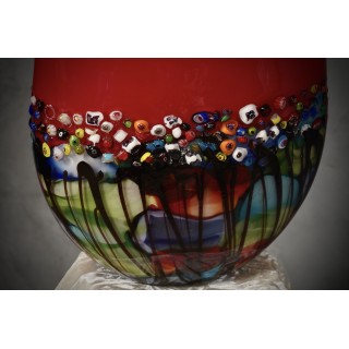 Fantastico vaso della vetreria di Murano, sia per la sua particolare lavorazione che per il colore, infatti il vaso è di colore rosso e ha il rivestimento interno verde, detto "incamiciato".