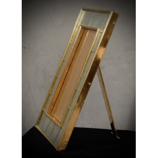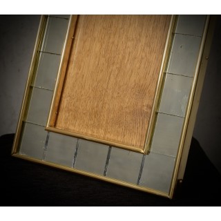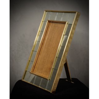 La cornice è composta da una struttura in legno su cui sono stati posizionati piccoli specchi di Murano; tutt'intorno sono stati posizionati profili in ottone lucido. La cornice della giusta dimensione conterrà perfettamente la tua fotografia del cuore. Dietro, ben rifinito e lucidato, c'è un profilo in ottone che consente alla cornice di rimanere dritta. Misure ( 36 x 26, ) Inches ( 14 x 10, ).