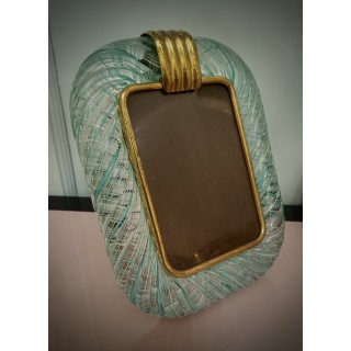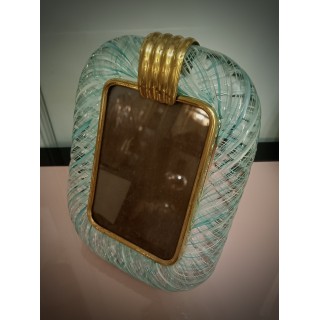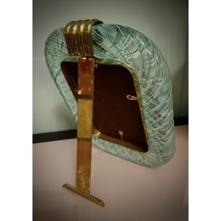 Murano frame signed Seguso Vetri D'Arte Murano, in glass and brass, classic "Torchon" shape.