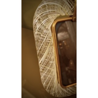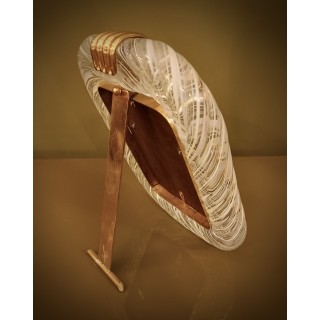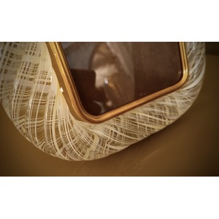 Brass structure, with a large round edge in transparent Murano glass. The glass edge is the classic workmanship of the 70s. The glass is transparent "torchon" with thread in different shades of white, as can be seen in the photos. Perfect for the portrait, it is supported on the back by a brass fin, where the signature is marked. Misure ( 25 x 20 ) Inches ( 10 x 8 ).