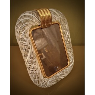 Seguso Vetri D'arte Murano White Color Art Glass Midcentury Picture Frame, 1990