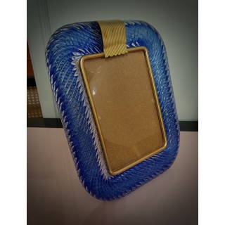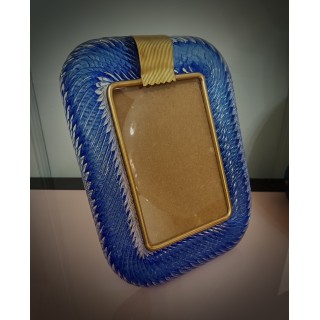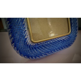 Barovier Toso Murano Blue Color Art Glass Midcentury Picture Frame, 1990