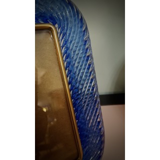 Splendida cornice Murano firmata Barovier Toso Murano, in ottone e vetro blu. Raffinatezza e classe come nello stile di Murano, pezzi unici nel loro genere che restano preziosi per sempre.