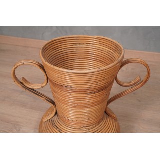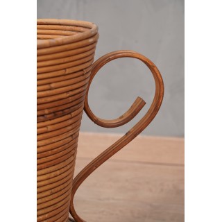 Vivai Del Sud Rattan Warm Honey Color Italy Amphora Vase, 1960