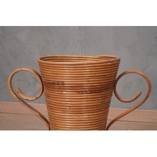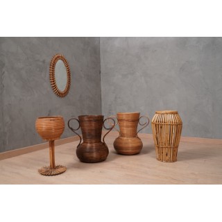 The amphora vases are in wicker. Cleverly curved and then placed one on top of the other, the wicker takes on a truly original shape. Very beautiful the patina and therefore the color of the amphora vase, a warm honey color. All very nice, from the spherical lower part to the cone resting on top, not to mention the shape of the two handles. The amphora has a very valuable design as it was in the character of the "vivai del sud".