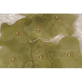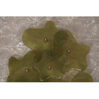 Questa affascinante applique stretta e lunga è stata realizzata interamente a mano a Murano. Ogni singola foglia è realizzata artigianalmente in vetro soffiato di Murano di alta qualità; ecco perché ogni foglia è leggermente diversa dall'altra. Colore emozionante, verde oliva.