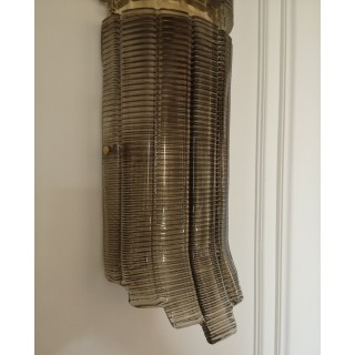 Murano Smoky Art Glass and Brass Wall Light and Sconces, 2000