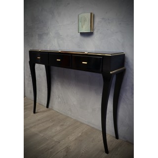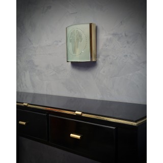 La coppia di applique ha una struttura in ottone, a forma di parallelepipedo, solo su uno dei lati è stato inserito un vetro sabbiato con disegno di un vaso, classico dell'epoca. Internamente ha una lampadina. Coppia di oggetti di nicchia e molto ricercati, per la loro perfetta fattura.