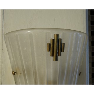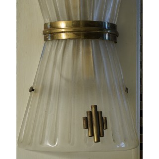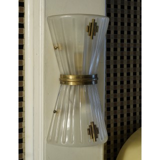 Elegante coppia di applique in vetro di Murano dal grande gusto '900, per la pregiata lavorazione dell'ottone e del vetro.