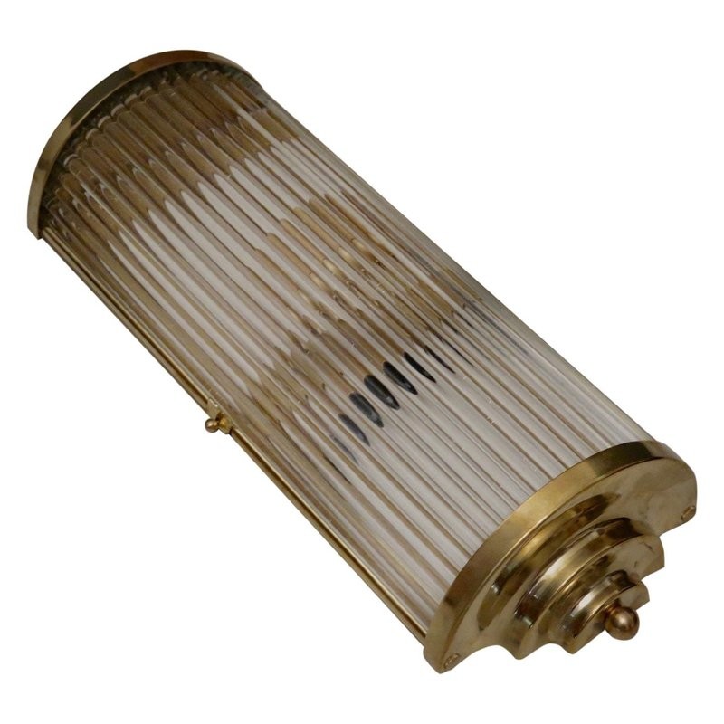 Sei appliques di forma semicircolare composte da bacchettine rotonde in vetro di murano e struttura in ottone. Possono essere vendute anche singolarmente. Epoca 1940. Provenienza Murano. Cm ( 50 x 19 ). Inches (20 x 7).