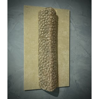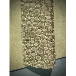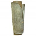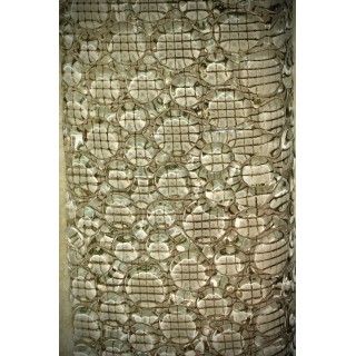 The applique is composed of a rear iron structure, which supports a beautiful Murano glass with a very particular design. The glass is in the shape of a very narrow shield and has a multitude of buttons attached on top. In the back it has a particular processing as if it were the meshes of a net. You can see this work well from the photos of the details. Above and below there are two brass shapes closing the glass. Misure Cm (22 x 17, H 90). Inches (9 x 7, H 35).