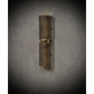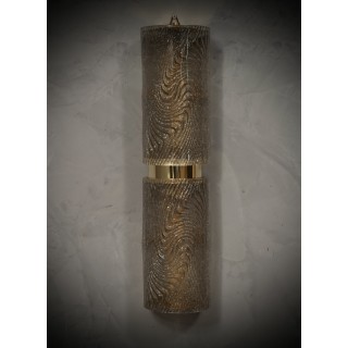 The applique is formed by a metal structure gold colored that allows the superimposed housing of two beautiful dove gray Murano glass tiles. The design is very clean and simple, but at the same time gives the applique a very refined elegance. Its polished brass frame makes it very rich. The glass workmanship is very beautiful, giving the two overlying tiles a very precious and finished look. Refinement and style as it is in the Murano style of that period, unique pieces of their kind and pieces that always remain precious. When turned on, the lamp is very bright having two bulbs, one per glasses, it will perfectly illuminate your space.Perfect condition. Misure ( 15 x 13, H 60 ) Inches ( 6 x 5, H 24 ).