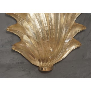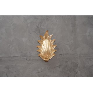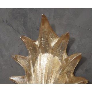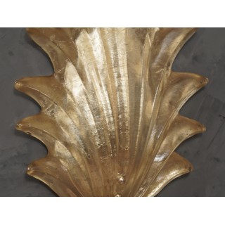 Maestosa foglia in vetro di Murano di un meraviglioso colore oro, resa ancora più bella dalla base in ottone lucido.