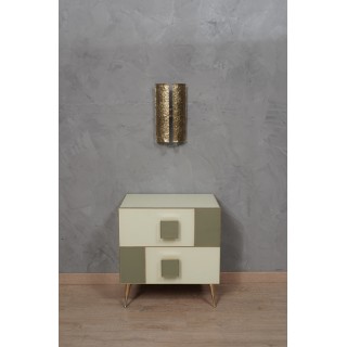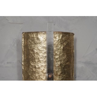 The applique is composed of a beautiful smooth and curved glass to form a semi circle. The glass has been gold in the back part, very beautiful and strong. Above this curved glass a narrow and long transparent glass parallelepiped was placed, which makes the applique even more beautiful in its design, it is fixed by two brass screws. The structure to which the glass is attached is burnished brass and the two lamp holders are gold colored. Refinement and style as it is in the style of Murano glass factories, unique pieces of their kind and pieces that always remain precious. When turned on, the applique is very bright having two bulbs lamp holders, it will perfectly illuminate your home. Misure ( 20 x 11, H 43 ) Inches ( 8 x 4, H 17 ).
