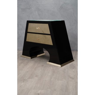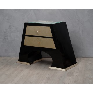 Splendid elegance for this rare example of a chest of drawers with two drawers; all due to the research of its form and the processing of its materials.