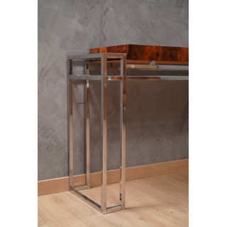 Consolle raffinata ed elegante in cromo e legno, dal design unico nel suo genere; il design in cromo e legno si sposa perfettamente. Questo materiale lucido trasforma questa consolle in una scultura modernista con angoli acuti e geometrici.