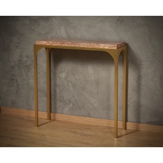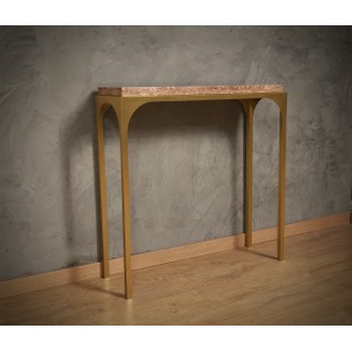La consolle è composta da una struttura in ottone opaco protetto, dal design molto particolare, formata da una struttura in ottone semplice e lineare. Sopra c'è un piano in legno rivestito con un pregiatissimo marmo "Broccatello di Spagna" di colore rosa chiaro. Un mobile che sicuramente vestirà e valorizzerà perfettamente la parete su cui è posizionato. La consolle è molto pulita e l'architettura del suo design è molto originale. Elegante e piacevole, la consolle è brillante nel suo design. Misure ( 92 x 30, H 94 ). Inches ( 36 x 12, H 37 ).