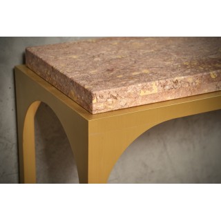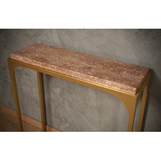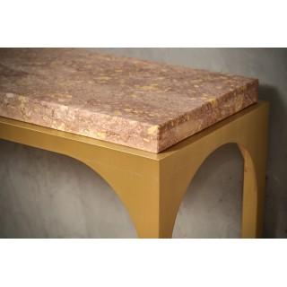 Refined and elegant console in brass and marble "Broccatello di Spagna", unique design; matt brass and pink marble are perfectly combined. This material transforms this console table into a modernist sculpture with clean and geometric corners.
