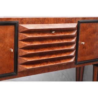 Very special Austrian sideboards with a very rich and rigid taste. Note the patina of the briar ash wood, and the particular manual processing of the central door.