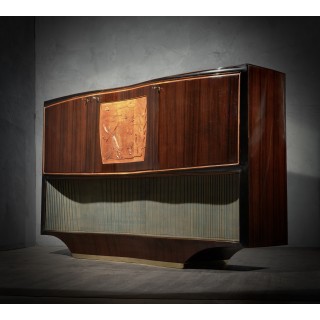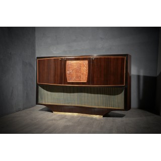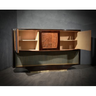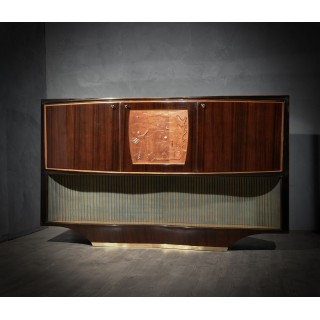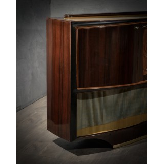 Bar cabinet buffet by Vittorio Dassi, composed of precious materials, such as walnut wood, brass and glass.