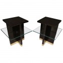 Tutto impiallacciato in legno di noce. Piano in vetro color oro, incassato. Tre ante frontali, che seguono il movimento del piano. Le due laterali sono impiallacciate in noce, mentre quella centrale ha solo una cornice impiallacciata in noce con al centro un pannello intagliato e lavorato. I lati sono lisci e dritti. Sotto c'è una parte vuota, con un vetro dello stesso colore del piano, e un movimento ondulato sullo schienale, in verde e oro. Cm (200x50, H 118). Inches (79x20, H46).