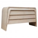 La credenza ha una struttura in legno con tre bellissime ante molto larghe. La struttura è stata completamente rivestita in vetro bianco e poi rifinita con profili in ottone. Per quanto riguarda le porte invece, si può vedere il gioco di colore tra il bianco e nero. Anche internamente la credenza è stata rivestita in vetro bianco. Credenza elegante ed originale nel suo genere, capiente e ben rifinita internamente. Molto eccentrico il gioco ottenuto con il vetro bianco e nero delle ante anteriori. Misure ( 161 x 45, H 73 ) Inches ( 63 x 18, H 29 ).