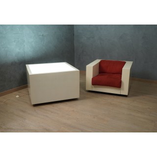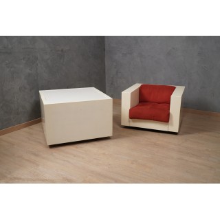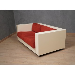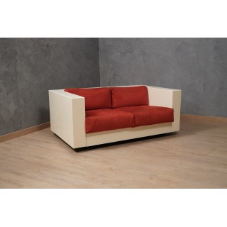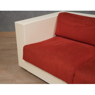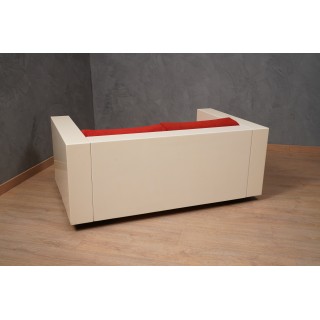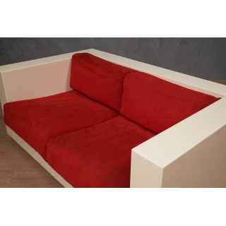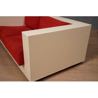 The sofa is made up of a series of modules in white lacquered wood, with cushions in red fabric. Studied down to the smallest detail, its design is linear and simple but perfectly and comfortably accommodates a person's seat. Misure ( 150 x 90, H 60/40 ) Inches ( 59 x 35, H 24/16 ).