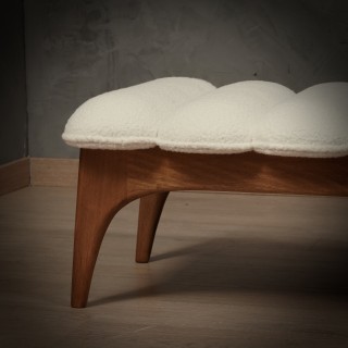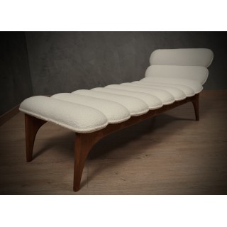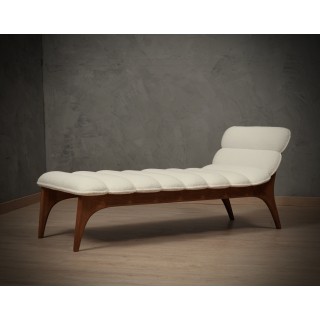 The dormeuse have a very particular wooden structure as you can guess from the photos. A very original curve forms the legs and then composes the backrest. The seat of the dormeuse is very generous and so is the side backrest, as was classic in its designs. The dormeuse has been reupholstered with a white fabric, very beautiful and original as the architect usually used to do. Misure (152 x 63, H 67/38). Inches (60 x 25, H 26/15).