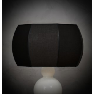 Preziosa ed unica in vetro bianco di Murano soffiato, dal design classico ma originale con un forte contrasto tra il bianco del vetro ed il nero del suo paralume.