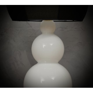 Precious and unique hand-blown Murano white glass, classic but original design with a strong contrast between the white of the glass and the black of its lampshade.