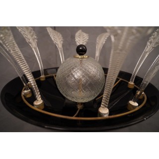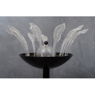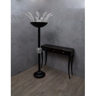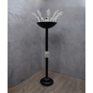 Particolarissima lampada da terra in vetro di Murano nero con particolari in vetro trasparente.