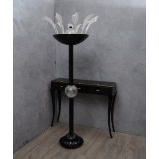 The floor lamp has a metal core that acts as a structure, all glass pieces are mounted on it. It is composed of a base and a stem with a transparent sphere in the center, above it there is a large cup inside which twelve leaves and another transparent sphere are inserted.Cm ( diametro 90, H 200 ). Inches ( Diameter 35, H 79 ).