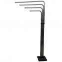 Floor lamp composed of a polished brass structure, and of light green colored Murano glass bodies. The structures of the glass bodies are in the shape of a four-leaf clover seen from above, then positioned alternated along the structure, forming a weave with square profiles in brass. Above it is placed a brass cover that has the same four-leaf clover shape of the glass. Its appearance is regal and elegant, in its simplicity. Narrow and long, it takes up little space, but it makes a lot of light.