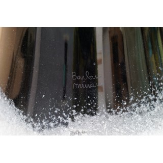Lovely and fine pair of floor lamps with glass mounting signed Barbini Murano, with a very particular appearance due to the large cup placed on a black wooden base. The Murano furnaces create a glass with an indisputable timeless design.