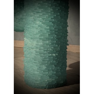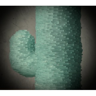 More than a floor lamp, it is a cactus sculpture made up of small pieces of sea-green colored Murano glass. It is made up of a series of five superimposed cylinders, which internally have 4 lights. The upper parts also have two arms that extend laterally and reach a width of 60 centimeters. The last cylinder, the fifth, is closed and covers the internal part where the bulbs are housed. The entire structure can be completely disassembled, and is therefore easily transportable. Misure Cm ( 60 x 24, H 105). Inches ( 24 x 10, H 41).