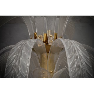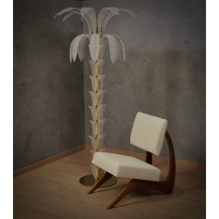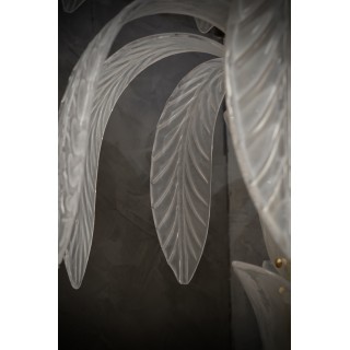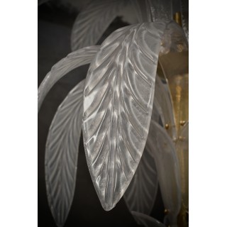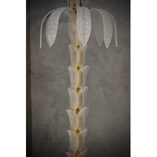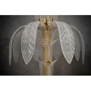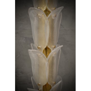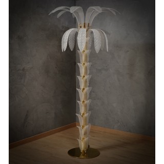 La lampada da terra è composta da una base rotonda e da uno stelo in ottone su cui sono state applicate 36 piccole foglie in vetro di Murano acidato; invece nella parte superiore sono state inserite 20 grandi foglie in vetro di Murano, dieci sotto e dieci sopra. La lampada da terra è un vero e proprio oggetto di design della fine degli anni '70 e dei primi anni '80, molto elegante e unica nel suo genere. Raffinatezza e stile come è nello stile di Murano, pezzi unici che rimangono sempre preziosi. Misure ( diametro 120, H 220 ). Inches ( diameter 43, H 86 ).