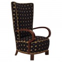 Characteristic and precious Austrian armchairs in bleached maple, with rich brass inserts, all married with a beautiful black and silver fabric.