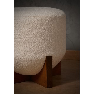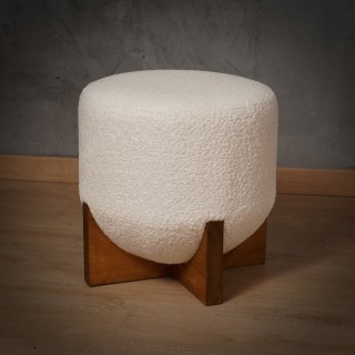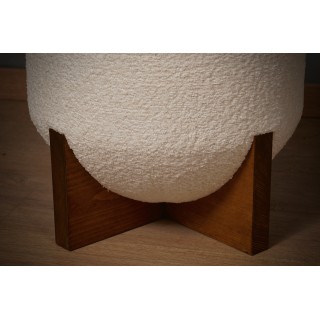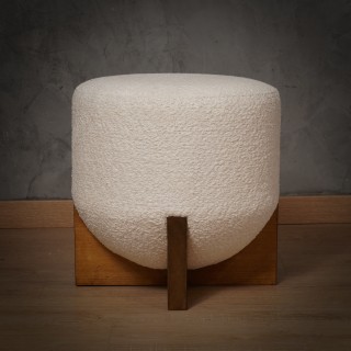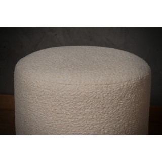 Lovely pouf with a very simple shape embellished with a beautiful white bouclé fabric. Beautiful yet very simple design.