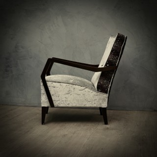 Very elegant appearance due the use of not common fabric, coming from particular Italian silk factory, this gentle upholstery gives these armchairs a very luxurious appearance.
