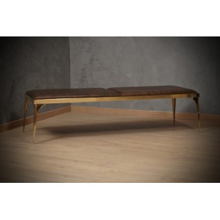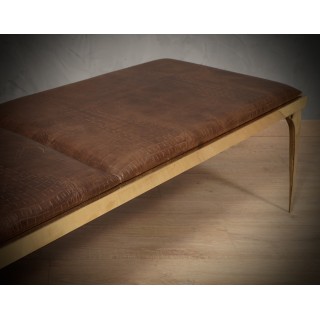 The dormeuse is composed of a brass structure, composed of a rectangular brass frame on which a leather-covered wooden seat is mounted; the whole is raised from the ground by four legs made of "fusion" of brass, very beautiful and particular their design. Misure Cm ( 176 x 55, H 45 ). Inches ( 69 x 22, H 18 ).