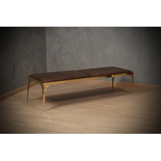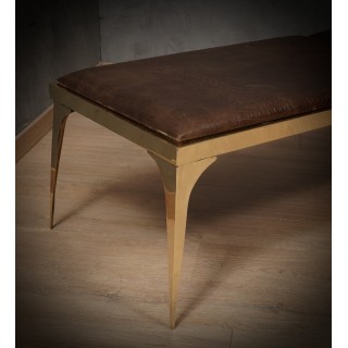 Stupenda panchetta di design in pregiato ottone, arricchita da una bellissima pelle marrone.