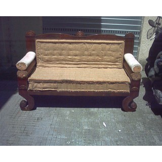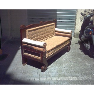 Divano Biedermeier lastronato in legno di noce, epoca 1820. Il divano in ottime condizioni strutturali, è stato sverniciato e rilucidato con gommalacca. Per quanto riguarda la tappezzeria è stato scelto un tessuto di velluto con fondo in seta stropicciato di colore verde marcio.