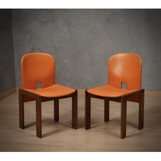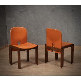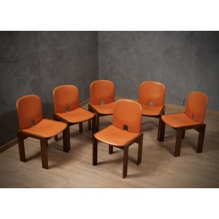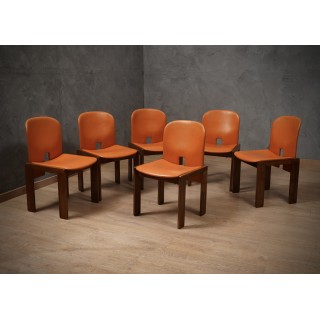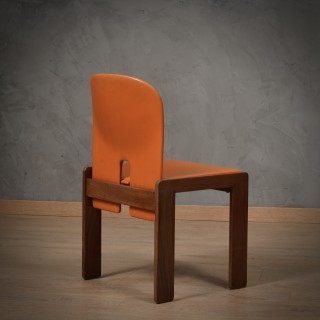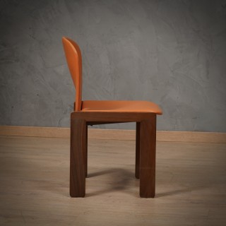 Afra & Tobia Scarpa per Cassina Model 121 Leather Walnut Dinning Chairs, 1967