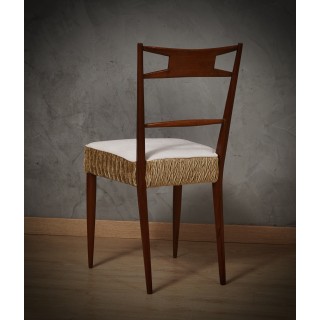 Walnut Wood and White and Bronze Velvet Italian Chair, 1950