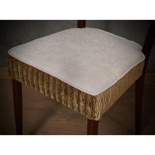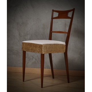 All in walnut wood, with a particular design of the backrest. As you can see from the photos, the legs and the backrest are in walnut wood. The seat cushion is covered with a very fine fabric from "Seterie di Zoagli". To be precise, it is a bronze velvet crumpled along the band, and a white chenille for the seat. The chair is very elegant and fancy, being single it can have more than one location in a house. Misure ( 46 x 44, H 90/49 ) Inches ( 18 x 17, H 35/19 ).