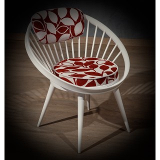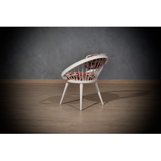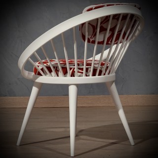 Characteristic circle chair by Yngve Ekström, exciting design made elegant by a beautiful white and red fabric.