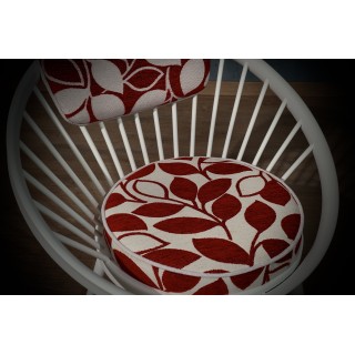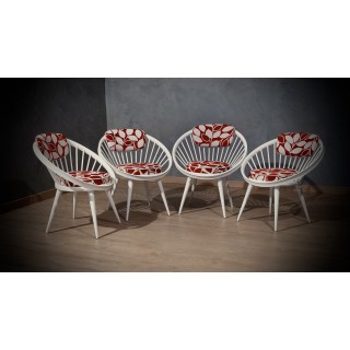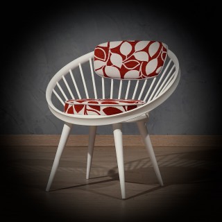Caratteristica sedia circle di Yngve Ekström, design accattivante reso elegante da un bellissimo tessuto bianco e rosso.